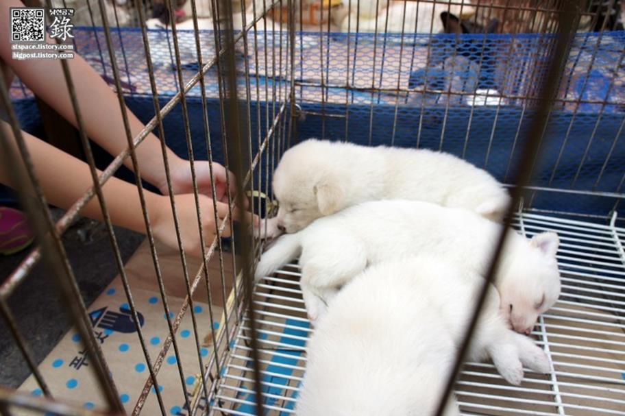 시장에 팔려온 강아지들…